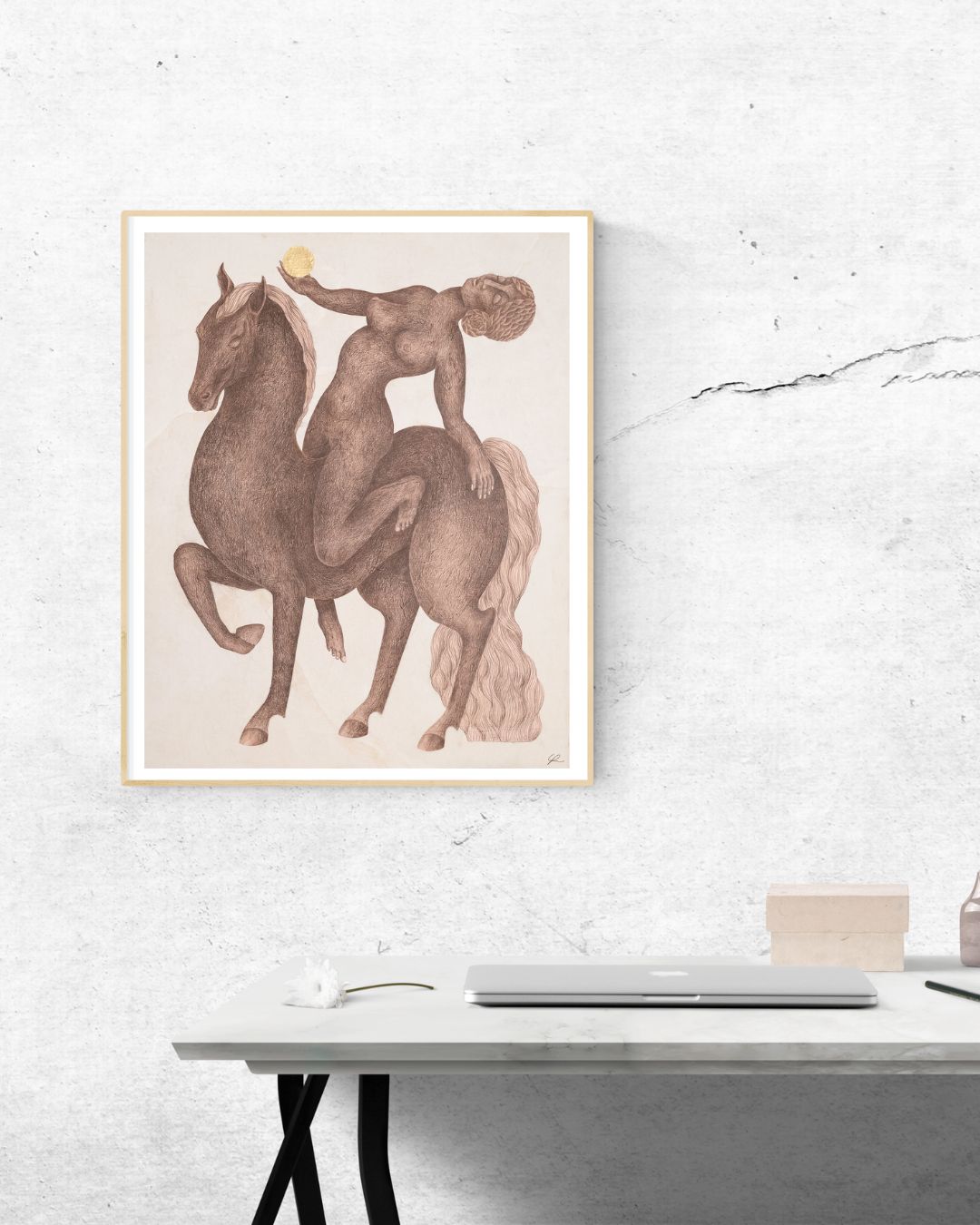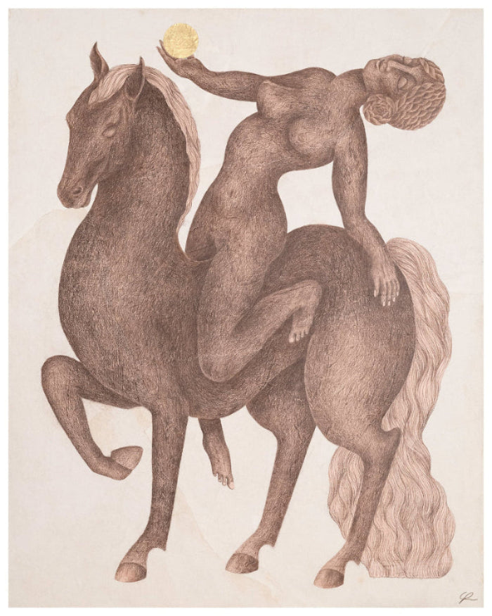 limited edition art print inspired by the sacred bond between horse and human, which I feel is currently reawakening all over the planet. I mused upon women's wild and feral nature, the elegance of both horse and female and how they align through presence and feeling. Both are intuitive and deeply connected to mother earth.