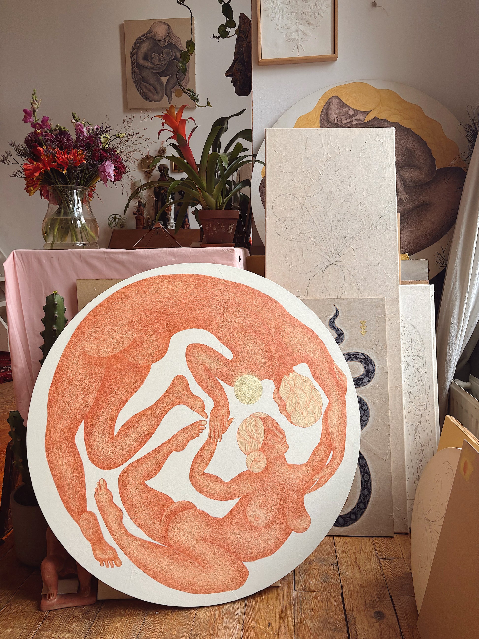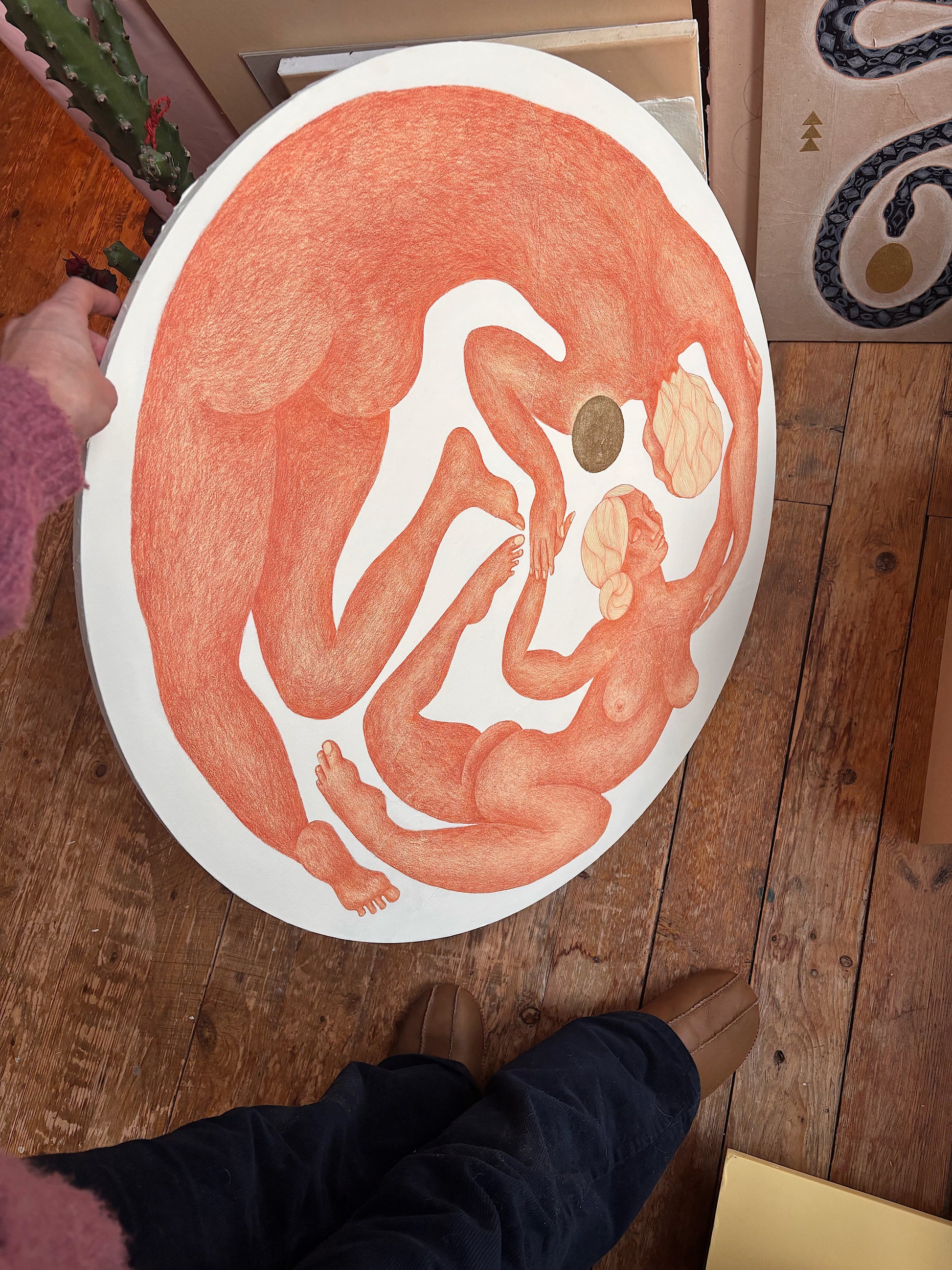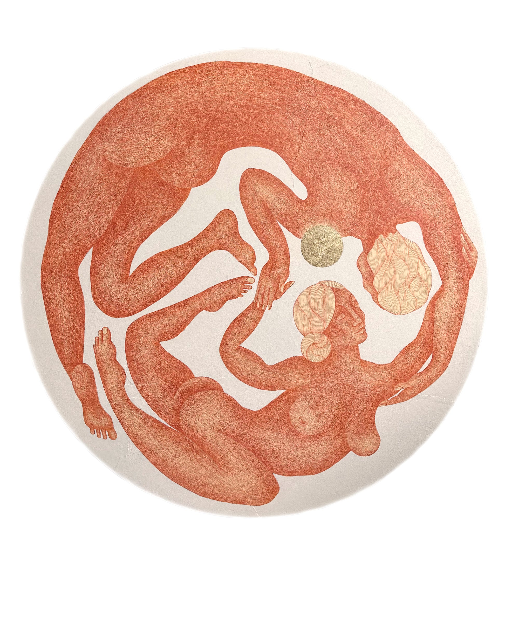 original 'drawn painting' inspired by the dance of feminine and masculine energies, magnetic poles. The dream of duality within the greater whole. A sweet one!