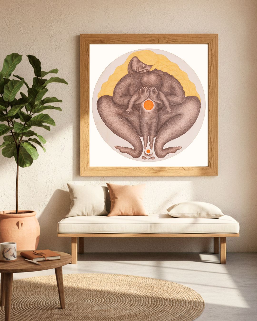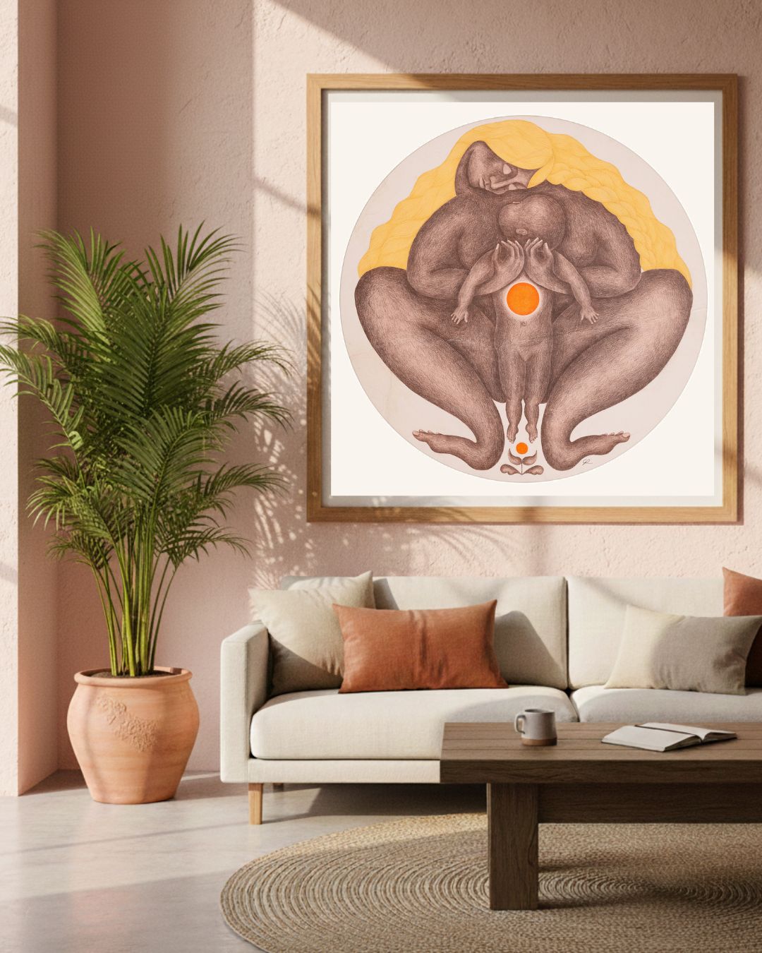 limited edition art print inspired by the creative potential of the feminine and the wondrous ability of the female body to build and birth another human ~ carried by nature herself.