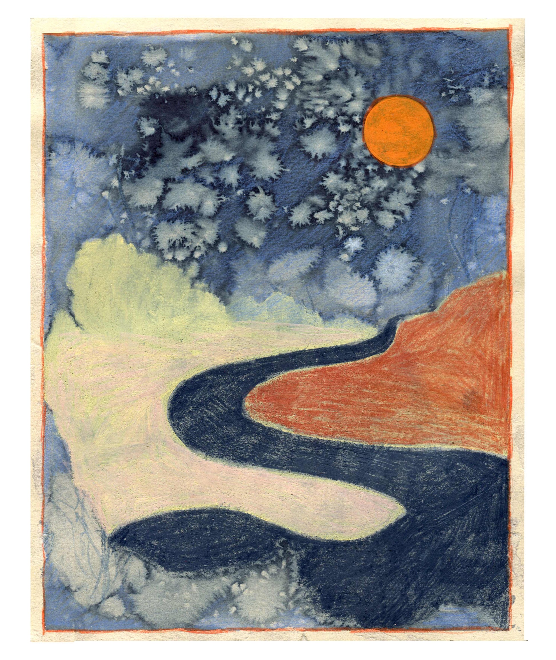watercolour, salt, coloured pencil, acrylics, oils on paper