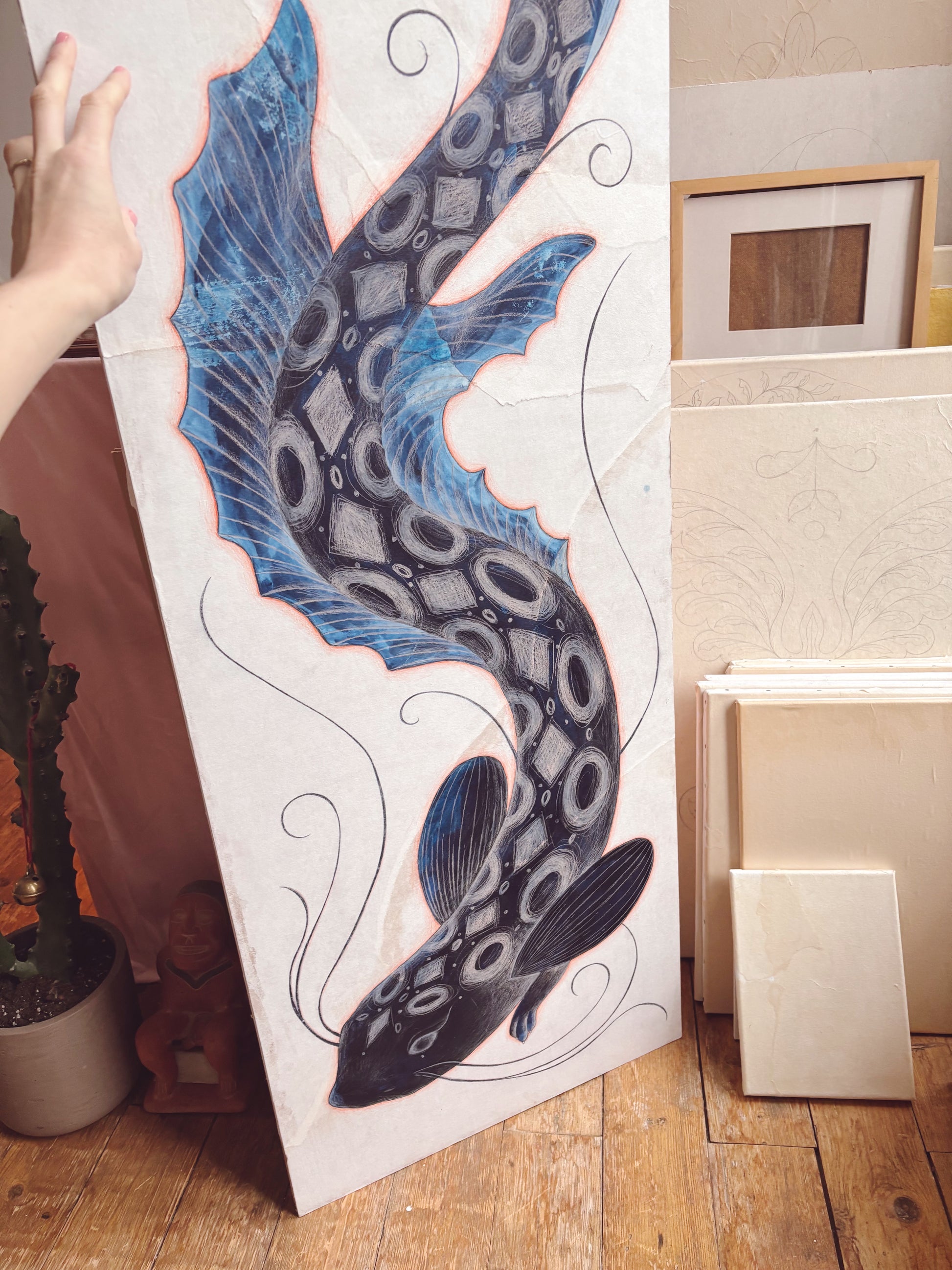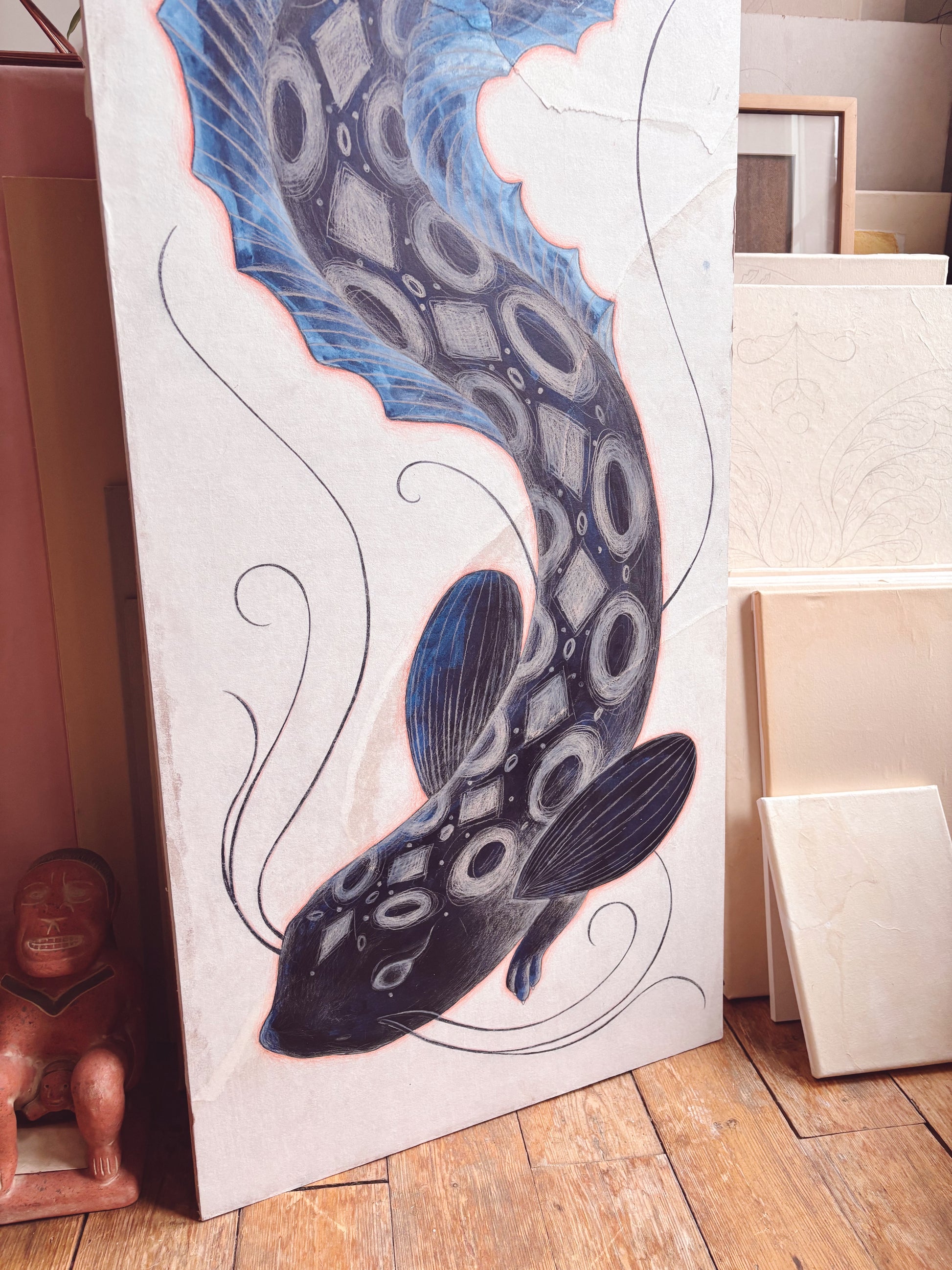 original painting inspired by a water dragon that appeared in my dreamworld. As the frequency levels of earth rise, dragons can be perceived again - sharing their presence through dreams, ceremony, visual signs that appear in your waking life or the landscape.